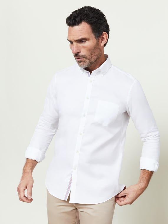 Back to reality the following week, and it was the turn of the casual smart classic Oxford shirt. This is an adaptable shirt that bridges the gap between smart and casual. This edition is in timeless white, making it an even more versatile choice. “The fabric has the traditional basket-weave structure of all Oxford shirts, which gives it a slight criss-crossed texture and a subtle sheen. The pure cotton is both robust and soft, ensuring that you stay cool and comfortable throughout the day”.