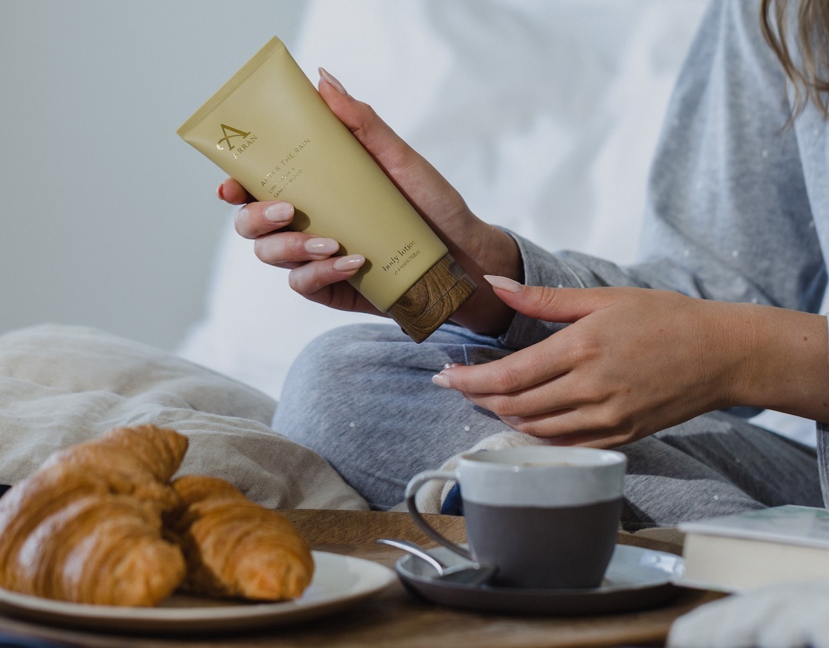 So what items are kept in my bag you wonder? Well with all the hand washing and sanitizing we are doing nowadays hand lotion is a must, and Arran has the perfect tube of Glen Rosa Fig & Ylang Ylang hand lotion. The same amazing fragrance, quick absorbing cream that leaves your hands silky smooth and cared for. Perfect size for on the go applications too. And lastly but definitely not least it’s the After The Rain Rollerball Fragrance, it stays on your skin for such a long time and the notes transform beautifully. It’s a fresh yet warm floral fragrance perfect for anytime of day. And a great size for keeping in your bag.