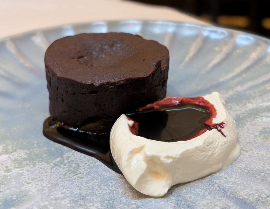 C shifted in his seat. I didn’t need to look up – I could feel it. The meal had built like a slow-burn investigation, each course more delicious, each flavour more precise, until the whole thing felt less like dinner and more like someone tightening a net. And now here it was: the soft centre of the moelleux, defenceless.