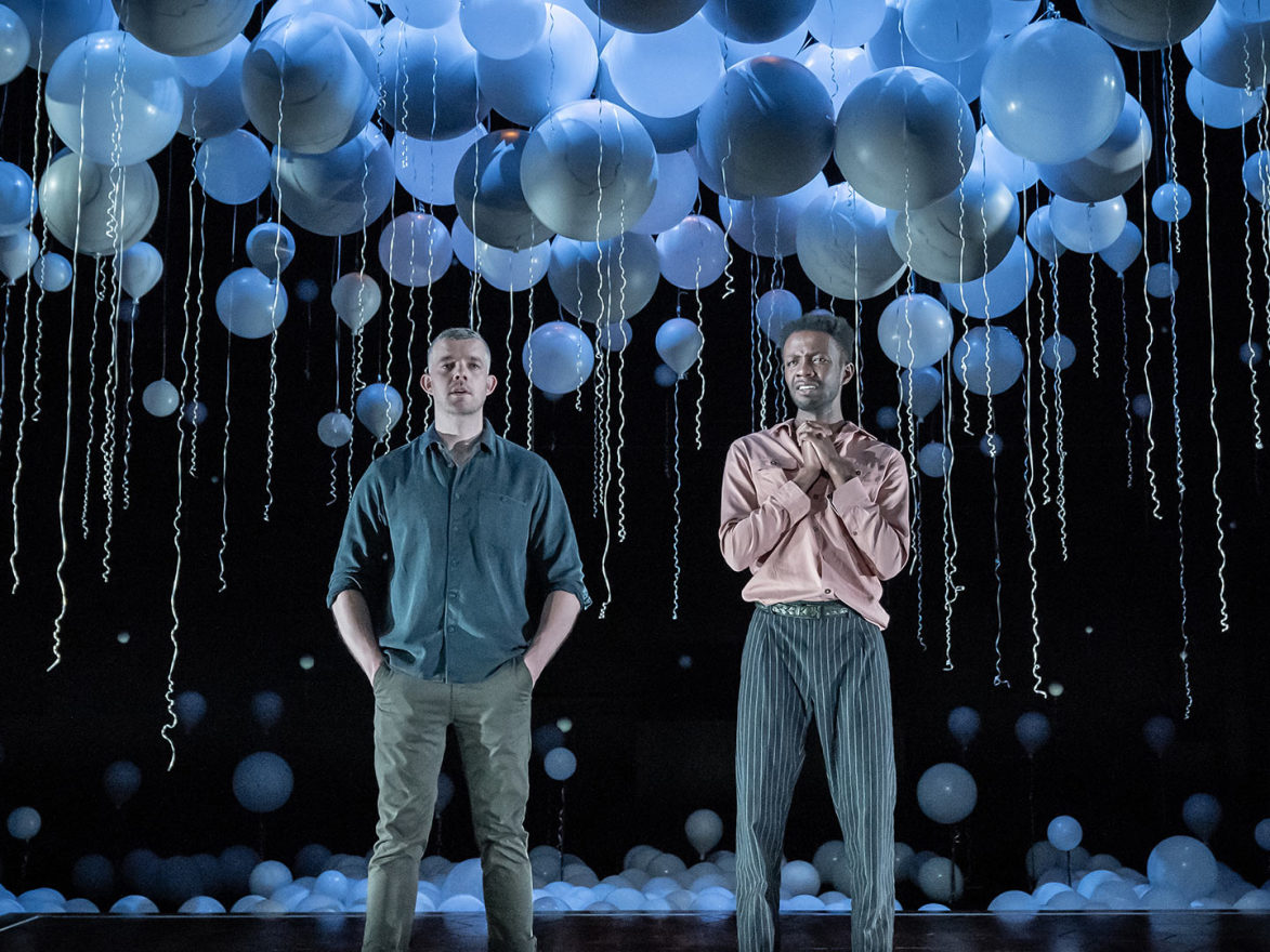 The set designed by Tom Scutt is simple yet effective, a mass of balloons with clever lighting by Lee Curran show the changes in the possible dimensions are characters are situated in. David McSeveney’s sound design creates a suspenseful atmosphere as scenes change in a flash.