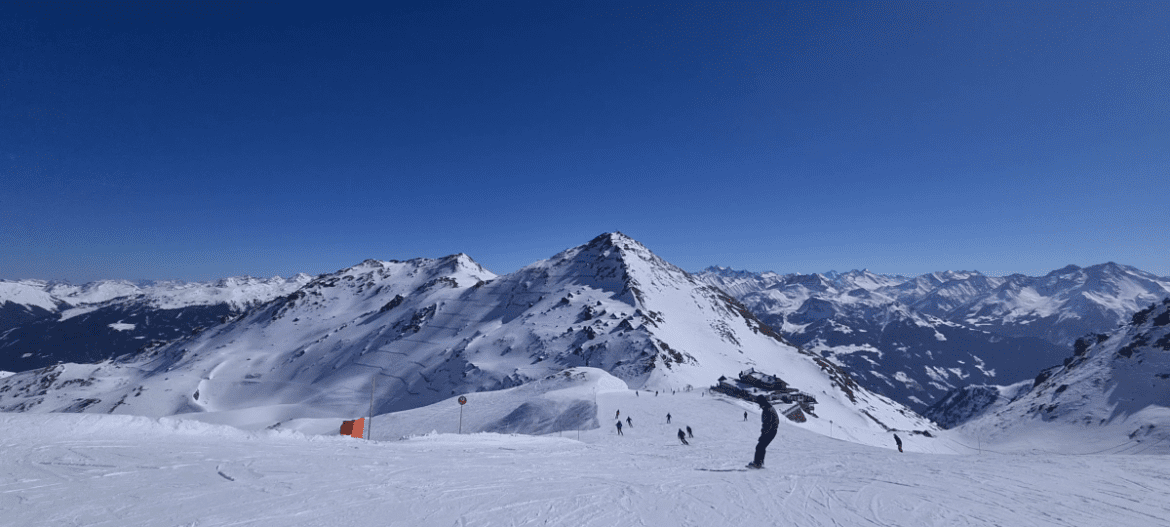 With plenty of parking at Kaltenbach and a very large base station, this was our entry point to the mountain, but one can drive up to Hochfügen and access the skiing area from there as well. Once the efficient lift system delivers you up to the top, one can see for miles and miles, a guide is handy at this point; our guide Henrik, a local Dane, showed us around the pistes pointing out various mountains and other local ski resorts dotted along the glorious Zillertal valley.