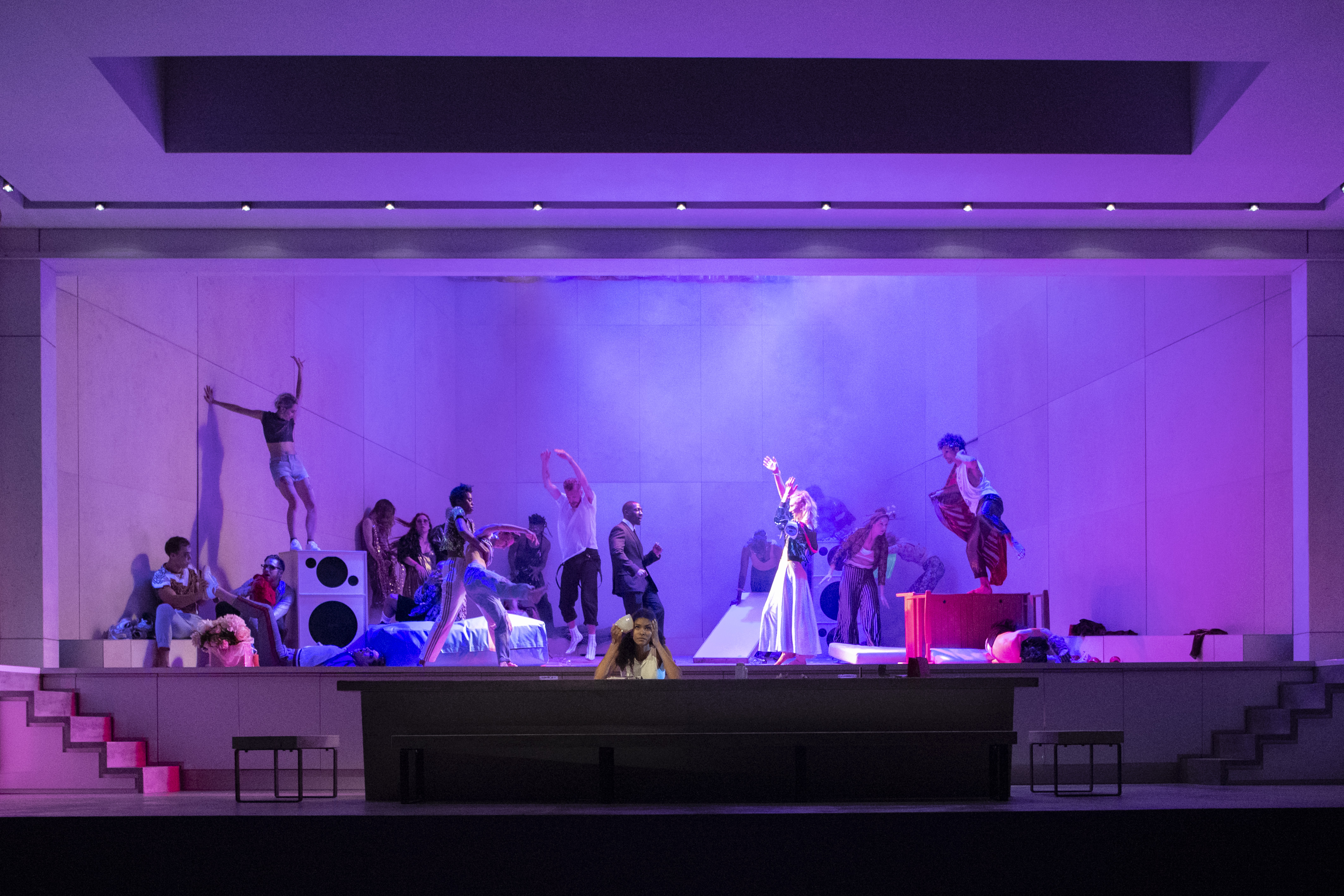 Tom Scutt’s design is bright and slick, the staging is superb with the kitchen and party locations separated by a moving wall and the movement by Anne Yee is a striking visual of excess and greed as the opening section of the play sees the party “come in to the audience” with the stage and lighting making you want to jump on stage and join in the rave! Carrie Cracknell’s direction sees the party goers exit the stage via the cupboards of the kitchen ominously closing them as they leave: a suggestion that debauchery and wickedness hides in the walls of the very house, as in Julie’s ruined mind.