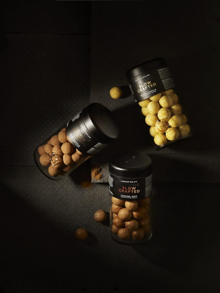 Lakrids by Bulow has sustainability as a pillar at each stage of production. The new recycled jar for the Slow Crafted range is one stage, which by the way has a very personal touch on each label, a small white square with the name of the very person helping create that every batch. The production process is fuelled by 100% green energy and they use 100% recycled plastic jars.