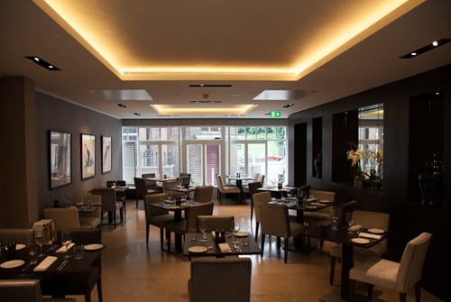 [vc_row][vc_column width=”1/2″][vc_single_image image=”6330″ img_size=”600×580″ alignment=”center” onclick=”link_image”][/vc_column][vc_column width=”1/2″][vc_column_text]In the Royal Tunbridge Wells Hotel One Warwick Park is an À la carte restaurant L’AMORE. On a Tuesday night two of us dined in the restaurant after pre-dinner cocktails in the sleek bar across the road in the main reception building we headed into L’AMORE to be greeted by a stunning chandelier and also attentive staff.