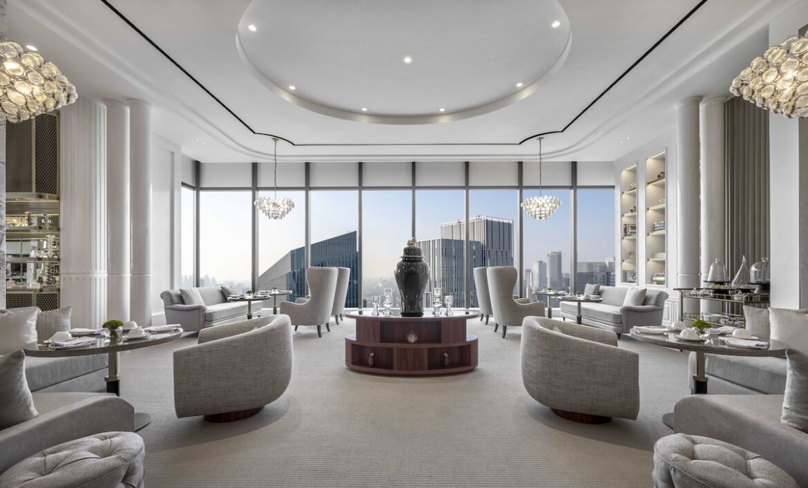 There’s a small minibar, TV and ironing board — though if you book an Executive Cityscape or Langham One Bedroom Suite, you get free membership to The Langham Club on the 59th floor, which offers to press three garments each day (along with other services, see below).