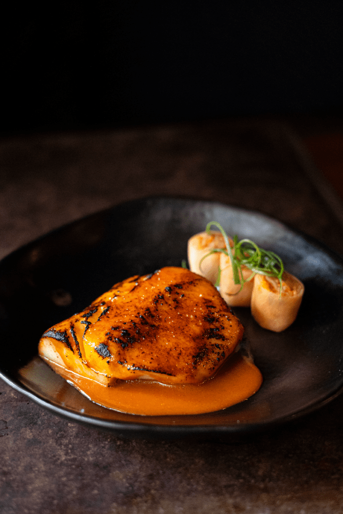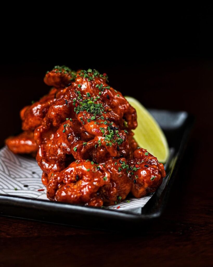 Our exploration continued with an aubergine dish that was smoky and crunchy on top, giving way to a tender, slow-baked interior that was utterly moreish. The Korean Spiced Black Cod was another highlight; a delicate, flaky texture and subtle flavor that harmonised beautifully with the accompanying sauce. The Gordon Fried Chicken, affectionately known as GFC, did not disappoint either. The savory sauce, reminiscent of buffalo sauce but with an Asian twist, coated the chicken, which maintained its crispness despite being generously drenched.