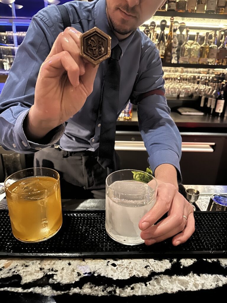 Rachel and I had long been intrigued by the restaurant’s reputation for experiential dining and its inventive cocktail menu. As we stepped inside, we were enveloped by an atmosphere that pulsated with life—a blend of contemporary design and nods to traditional Asian aesthetics. The ambience promised a lively evening, and we were eager to dive into the culinary journey that awaited us.