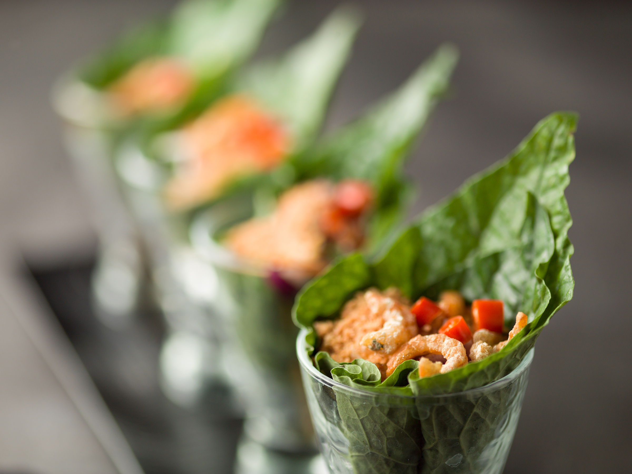 The second starter Esther brought us, was the Kor Moo Yang, a well sized plate of barbecued pork sliced and served with cucumber, and a traditional home made sweet and spicy nam jim jaew sauce. Redolent of hot summer barbecue feasts, the flavours were rich and juicy whilst the peanut dipping sauce was zesty and fragrant, cutting through the pork well and leaving a clean finish on the palate. This too, was pleasantly light and served a perfect second starter to our lunch. Still peckish enough for another bite before the main, Esther brought out one of her own favourites; the traditional Tom Yum soup of Thailand. Here, however, Mango Tree serve it with a hint of cream to offset the spiciness. A delicious bowl of hot, sour, and spicy broth with a dash of cream and shimeji mushrooms, lemongrass, lime leaf and coriander leaves, this soup felt like a wonderfully nourishing hug in a bowl.Alongside these three starters, my guest and I enjoyed two fruity champagne cocktails that Esther recommended as a means of adding sweetness to the spices of our starters. Both were Mango Tree Kir Royal Cassis, my guest had the strawberry, and I had a mango variation. Very, very, very enjoyable!