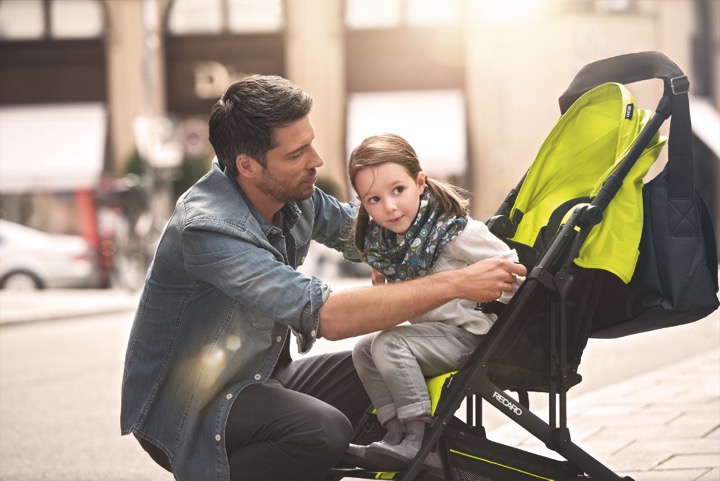 The brakes are brilliant. There is a push-push mechanism. The left-hand is brake coloured green for GO GO GO! The right hand pedal being (unsurprisingly) red for Whoa, there! Totally flip-flop and open-toe shoe friendly. No fiddly mechanisms to struggle with whilst wearing chunky boots and nothing to catch a naked toe on. I didn’t even know this existed in the stroller world, and am surprised by the practical difference it makes.The RECARO Easylife has a one-hand folding and unfolding mechanism that takes a little bit of practise to perfect (unless you are my husband of course, who mastered it instantly) but is very clever. There are eight wheels for a smoother ride and it has all round suspension. The front swivel wheels can be locked for easy manoeuvring one handed or over bumpy terrain. It’s touches like this and the brakes that really that set this unit apart from its rivals.