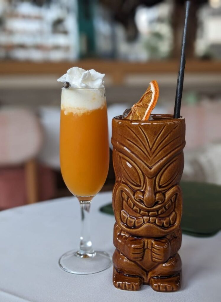 The drinks, too, had a sense of the eclectic theatre of the French Riviera. My partner’s L’Heure Verte cocktail came in a cheeky tiki-style cup and packed a punch of absinthe that felt surprisingly at home among the Riviera chic. Mine, the Paradis de Mangue, was a gentler affair – very sweet and lightly boozy, topped with a whisper of cream. I’ll be honest: it was dangerously close to dessert in a glass, so I would save this one in case you need a sugar hit!