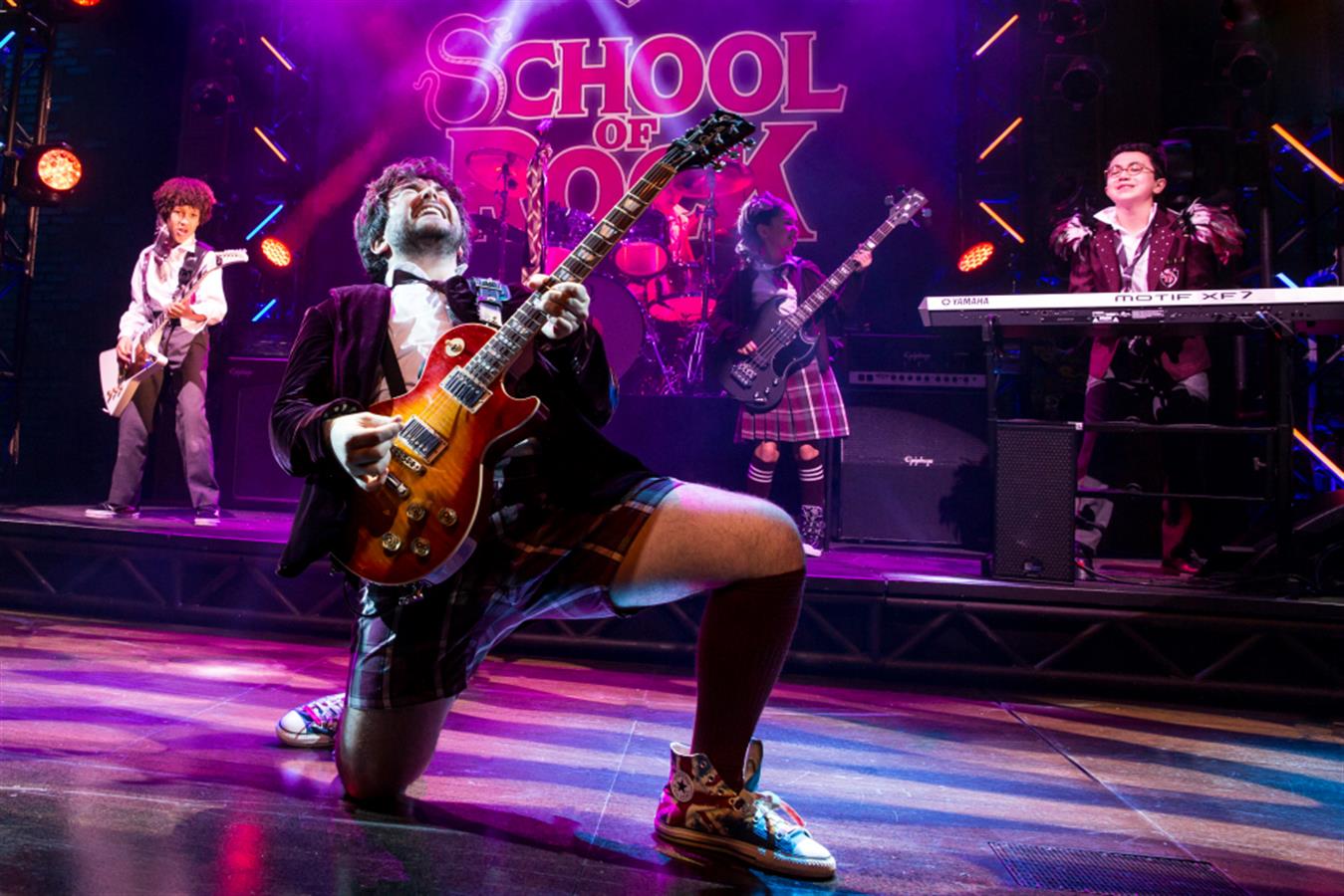 School of Rock – The Musical follows slacker and wannabe rock star Dewey Finn turn a class of straight-A students into an ear popping, riff scorching, all conquering rock band! Dewey poses as a substitute teacher at a prestigious prep school to make ends meet, and when he discovers his fifth graders’ musical talents, he enlists his class to form a rock group and conquer the Battle of the Bands. As Dewey falls for the beautiful headmistress, can he and his students keep this special assignment secret as they learn to fully embrace the power of rock?The lead cast of School of Rock – The Musical feature David Fynn as Dewey Finn, Florence Andrews as Rosalie Mullins, Oliver Jackson as Ned Schneebly and Preeya Kalidas as Patty Di Marco. Directed by Laurence Connor it features choreography by JoAnn M. Hunter, set and costume designs by Anna Louizos, lighting design by Natasha Katz and sound design by Mick Potter.