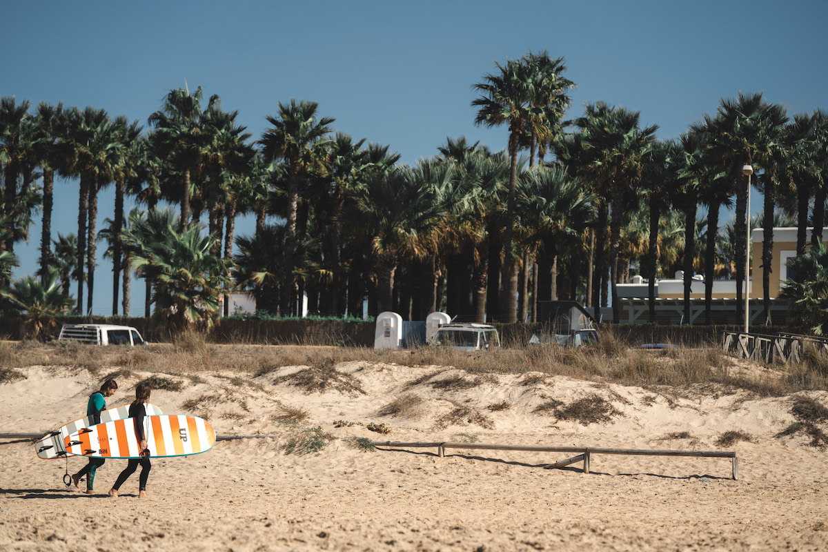 I’ve come to an unspoiled stretch of Spain’s Costa de la Luz to The Sea Retreat for surf camp. It’s 30 October (we’re well into ‘off-season’) and 25°C at El Palmar – a long, golden-sand beach on the southernmost tip of Spain, 50 kilometres from Tarifa (where you can ferry to Morocco’s Tangier).