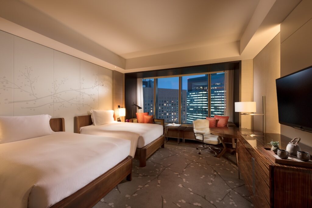 Upon entering the room, we were struck by the modern Japanese design that seamlessly blended elegance with functionality. The spacious 48 square meters (516 square feet) of the Twin Bay View Room offered panoramic views that overlooked the beautifully manicured Royal Hamarikyu Gardens and the shimmering expanse of Tokyo Bay. The large windows flooded the room with natural light, creating a warm and inviting ambience.