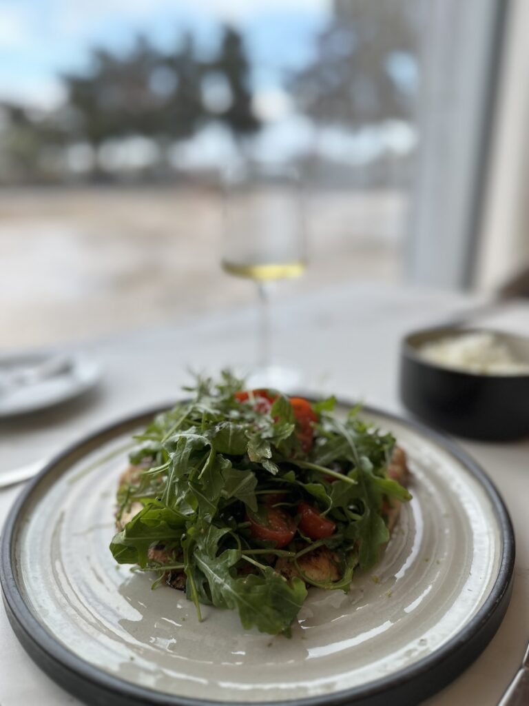 We were shown to our table by Mia, who explained the menu and then we were greeted by Rodrigo, who organised a lovely refreshing glass of Palpite Reserve White. We ordered Paillard de Fango; chargrilled chicken with rocket and tomatoes with a sweet balsamic reduction and pumpkin with cashew and watercress, which was quite small but very tasty. Both dishes were the perfect lunch choice being light and healthy options, and matched well with the delicate Palpite Reserve White.