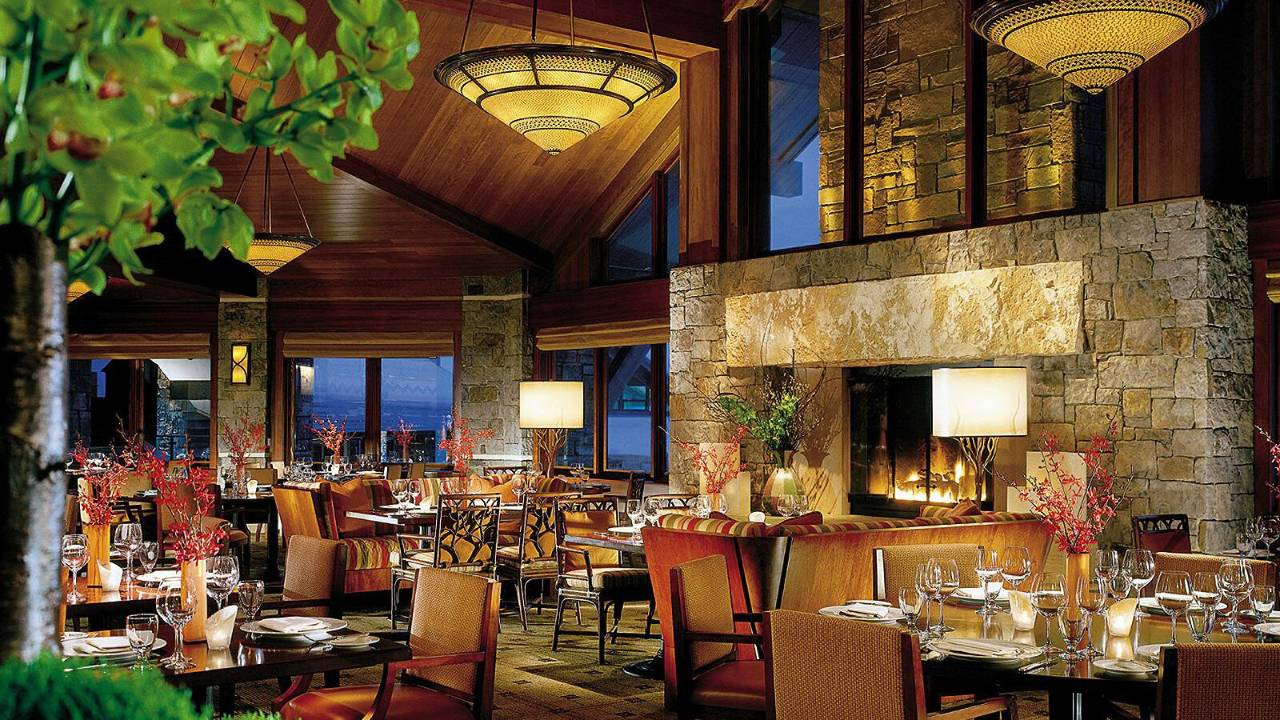Dimly lit, the Westbank Grill at the Jackson Hole Four Seasons has a timeless feel. The warm polished wood of the vaulted ceiling and furniture is akin to that of a large wooden lodge. The granite stonework is suitably rugged and the leather seating warm and cozy. Greeted with a beaming smile, we were escorted to a corner table with a view of the whole room and the impressive open log fire.