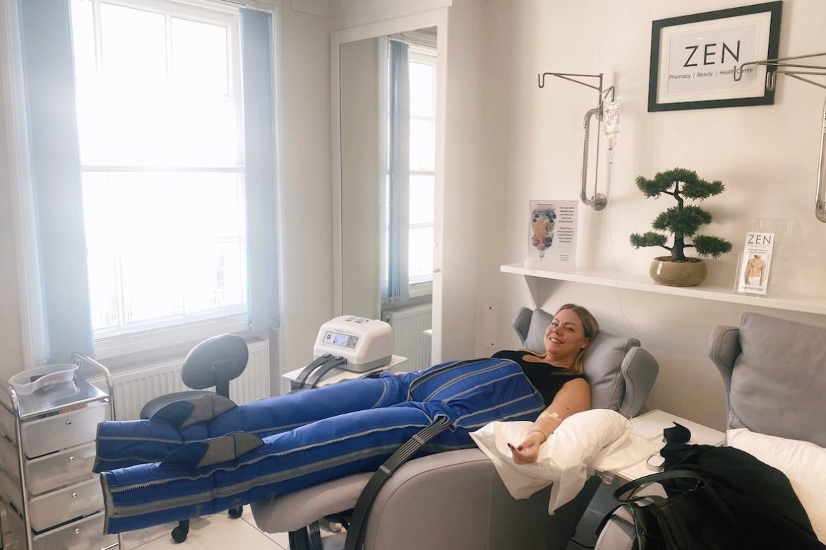 I was greeted by smiles and such a friendly atmosphere. Gemma greeted me at the door, she is a qualified nutritionist, weight loss expert and wellness coach with over 15 years of experience, she guided me upstairs where I was led into a lovely room and there it was, the Lympha Press suit along with the IV stand where my magic potion will be placed.